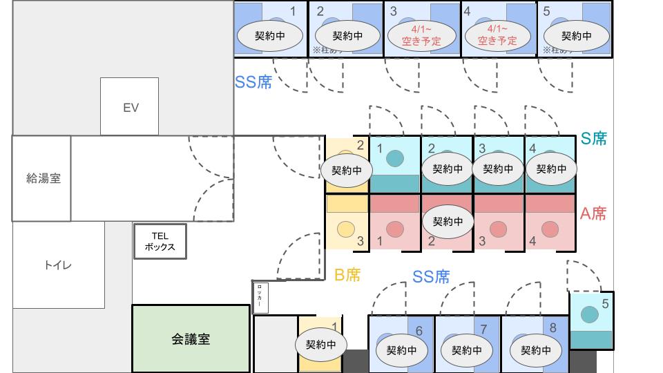 契約中の座席以外は、契約いただいた順番で好きな席を選択可能です。