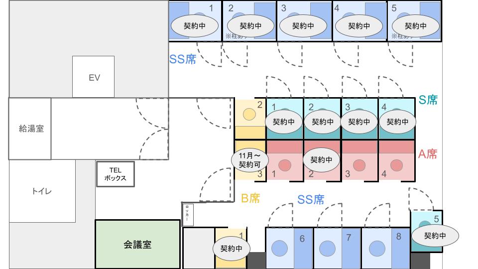 契約中の座席以外は、契約いただいた順番で好きな席を選択可能です。
